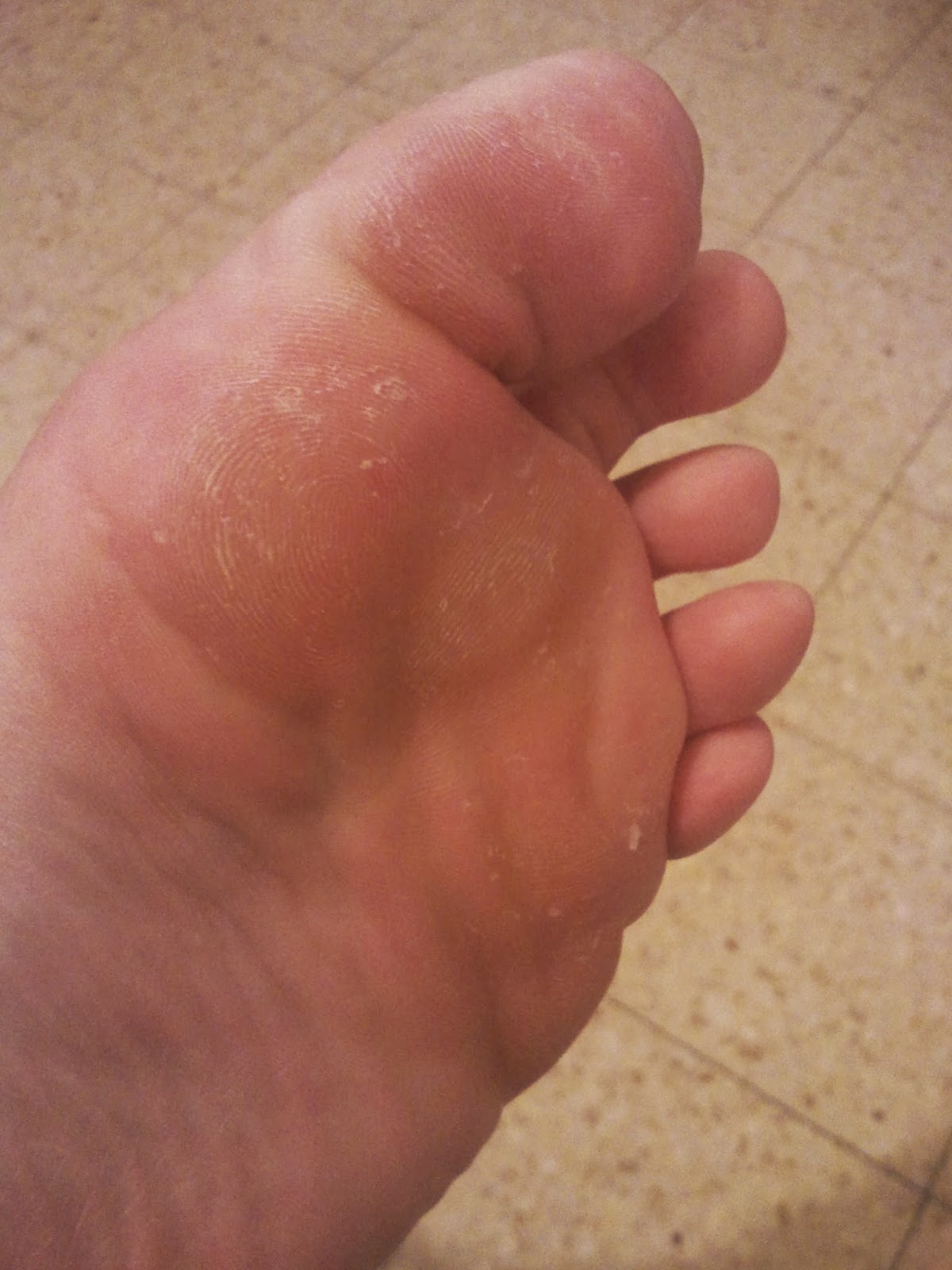 ככה נראתה הרגל שלי חמישה ימים לאחר השימוש (ואחרי קרצוף אינטנסיבי במקלחת, עם אבן)